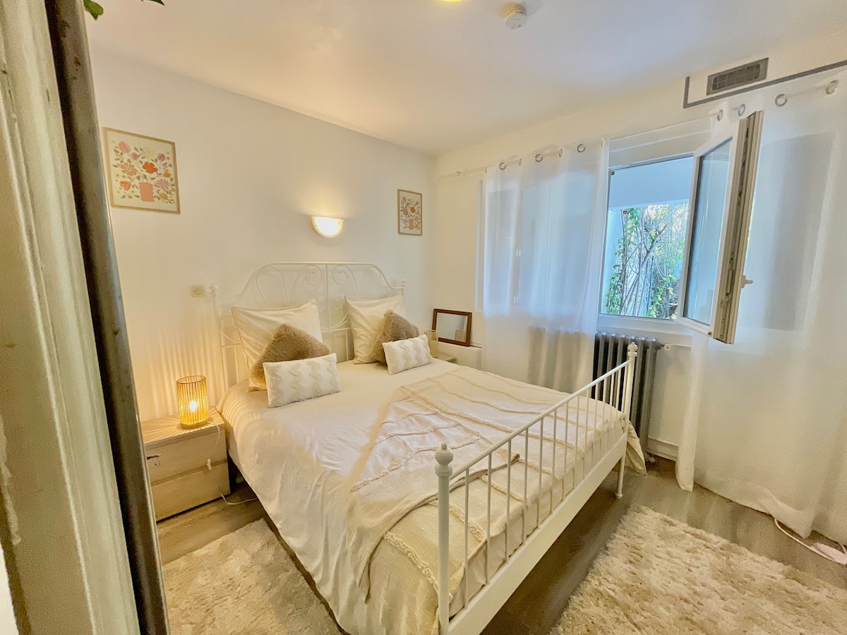 Vous disposerez de l’aile gauche d’une demeure d’un quartier résidentiel du centre-ville, Proche tous commerces, Monoprix, Salle des Ventes. Duplex indépendant de 47 m2 très lumineux, totalement équipé, tout confort. Chambre à l'étage avec terrasse, douche à l’italienne et WC. Vue dégagée sur parc et casino pour les joueurs Grand séjour avec cuisine américaine, salon sous verrière, accessible au travers d’une terrasse de plain pied, et jardin comprenant un emplacement pour deux véhicules.