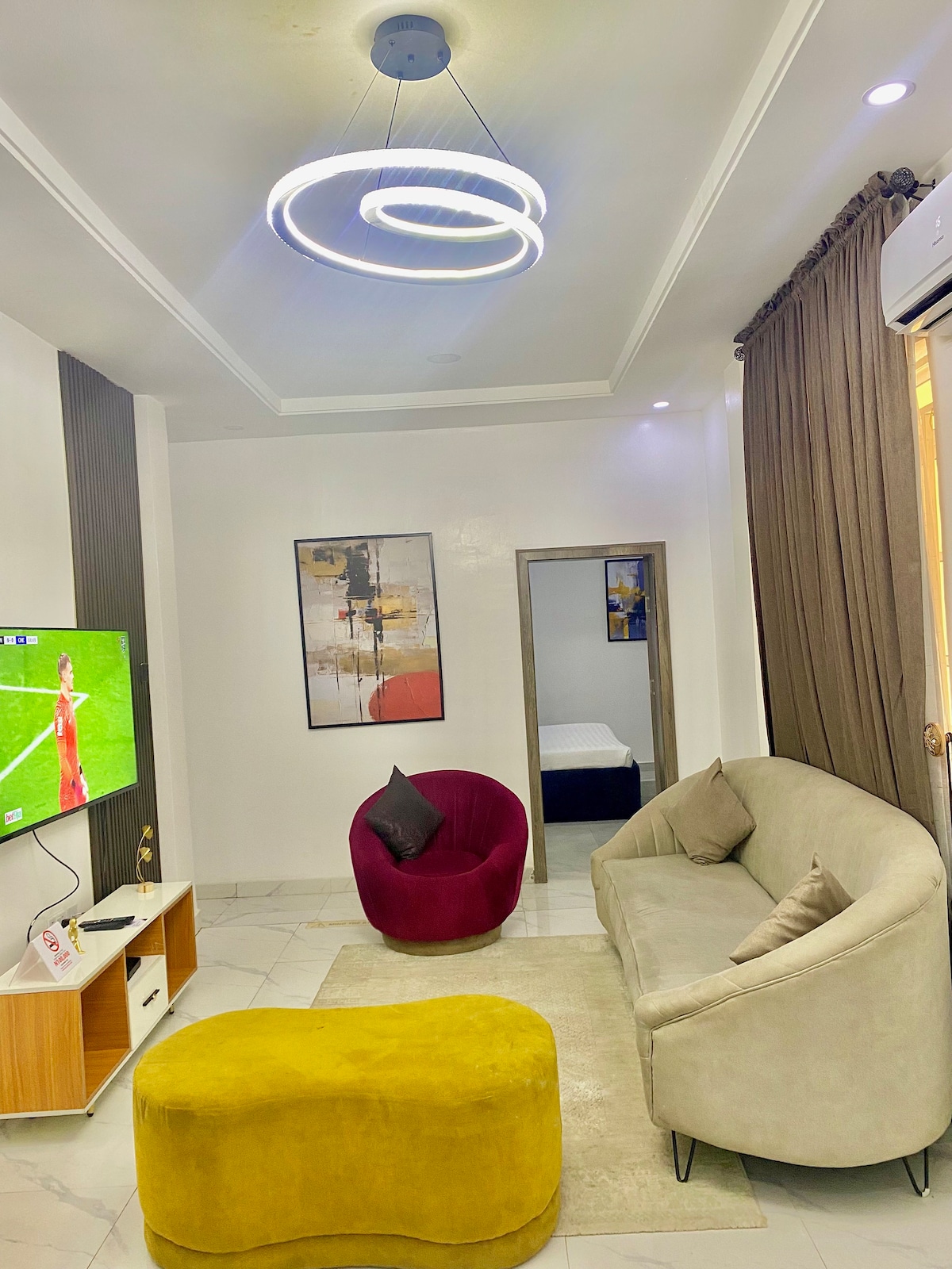 Relax in this serene, designer 1-bedroom apartment in Jahi, Abuja. With warm, earthy tones, a cozy lounge, private balcony, and a fully equipped kitchen, it’s perfect for couples, solo travelers, and remote workers. Enjoy fast WiFi, stylish interiors, and a peaceful vibe just minutes from the city buzz. Your modern home away from home.