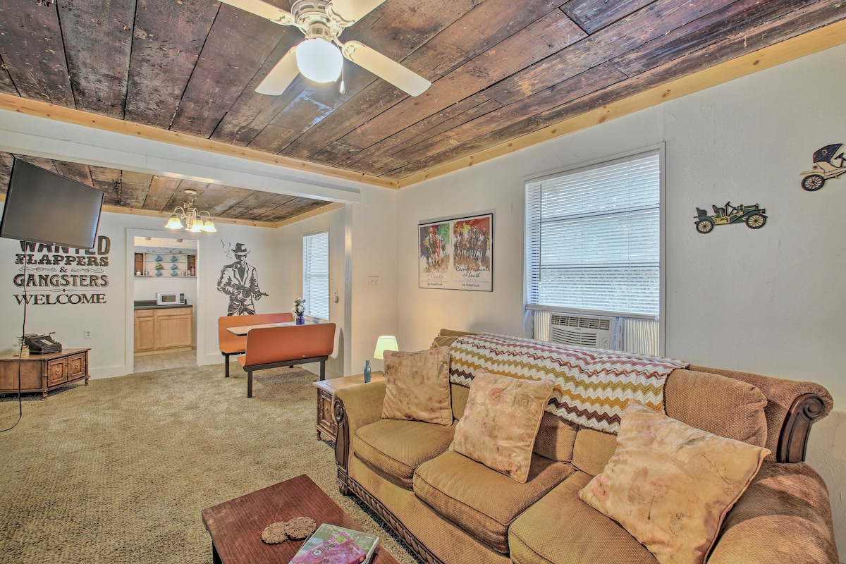Retreat for a while to this cozy, speakeasy-themed vacation rental in Hot Springs, about 1 mile from Bathhouse Row! Step inside this 2-bedroom, 1-bathroom home and you'll be instantly smitten with the unique decor that harkens back to a nostalgic, bygone era! Fix up a meal in the well-equipped kitchen, watch a movie on the Smart TV, or head out to the local breweries. Explore town with a visit to the Gangster Museum of America or get outside in Hot Springs National Park or on Lake Hamilton.