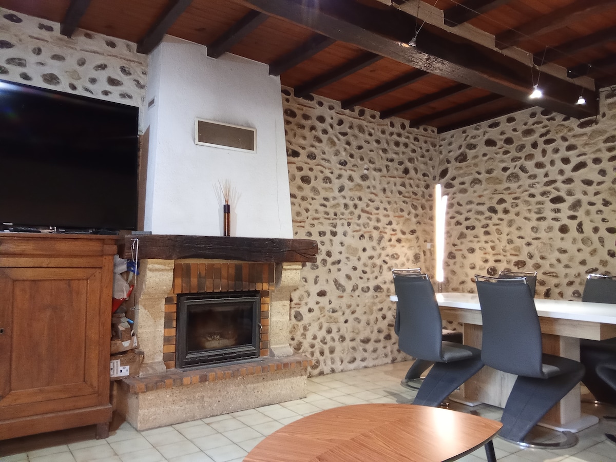 Studio indépendant de 45m2 aménager à l'intérieur d'une grange. Notre habitations se trouve à quelques mètres (mais assez loin pour l'intimité de chacun). La Pièce principale comprends la cuisine avec lave vaisselle, four, micro-onde, plaques inductions, grille-pain, machine à café nespresso, lave-linge et sèche-linge et un Coin salon avec un clic-clac transformable en lit (pour un couchage en plus) avec télévision. Salle de bains avec douche et toilette. Une chambre avec un lit en 160.