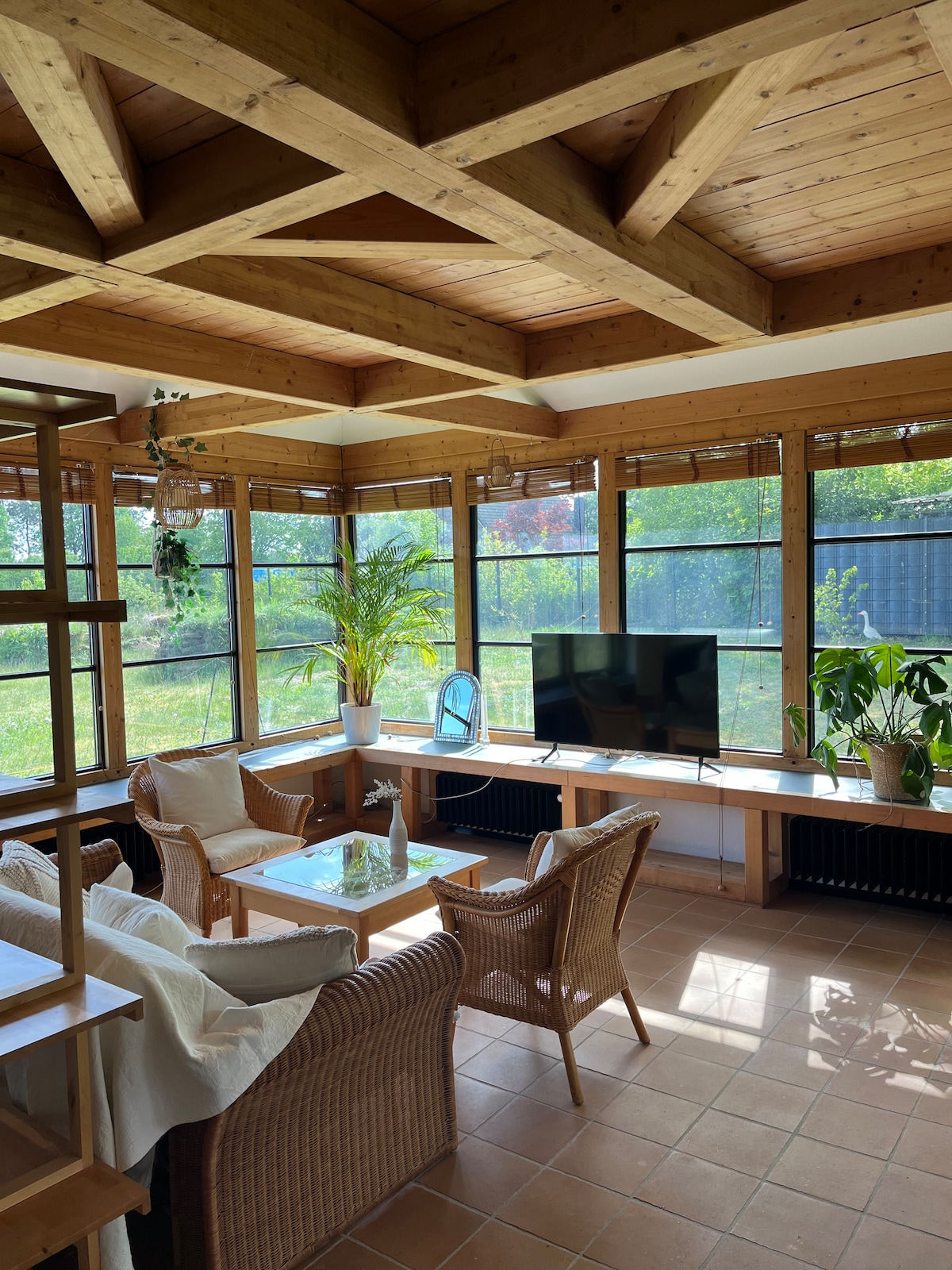 Wenn Sie einmal so richtig entschleunigen und ausspannen wollen, dann sind Sie in unserem Gästehaus im Grünen genau richtig. Mitten in einem großen, wunderschön angelegten Garten gelegen haben Sie ein kleines Häuschen ganz für sich alleine zur Verfügung. Mit bester Aussicht ins Grüne und Natur pur rundherum aus jedem Fenster und direkt vor der Haustür. Bis zu 4 Personen haben in der großzügig geschnittenen Wohnung mit 2 Schlafzimmern ausreichend Platz.