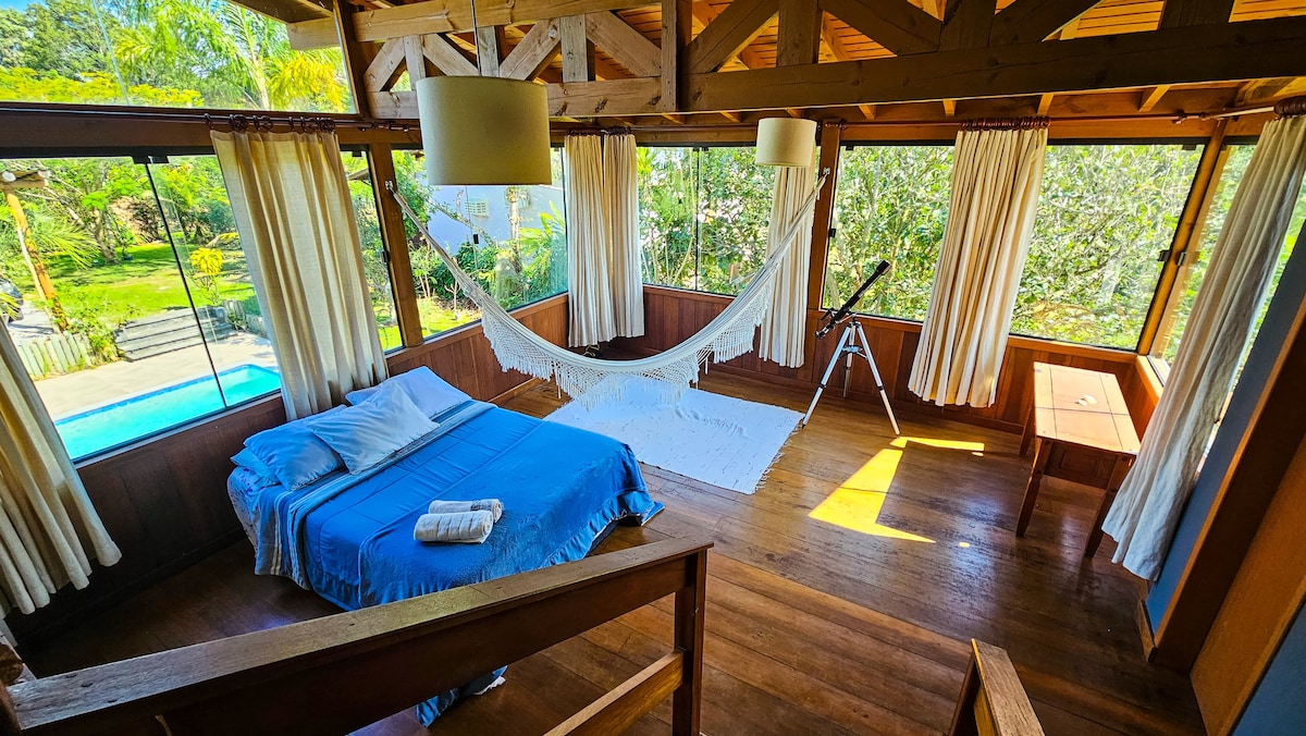 Reconecte-se com a natureza nesta fuga inesquecível! Um lugar incrível e privado para refletir, criar e mergulhar na natureza de forma harmoniosa. Aqui, você experimentará uma sensação única de imersão ao estar cercado pela Mata Atlântica enquanto contempla vistas deslumbrantes sobre o oceano, a lagoa e a montanha da Pedra Branca. A intenção é que ao ficar aqui você se desconecte totalmente do mundo exterior e se reconecte consigo mesmo!