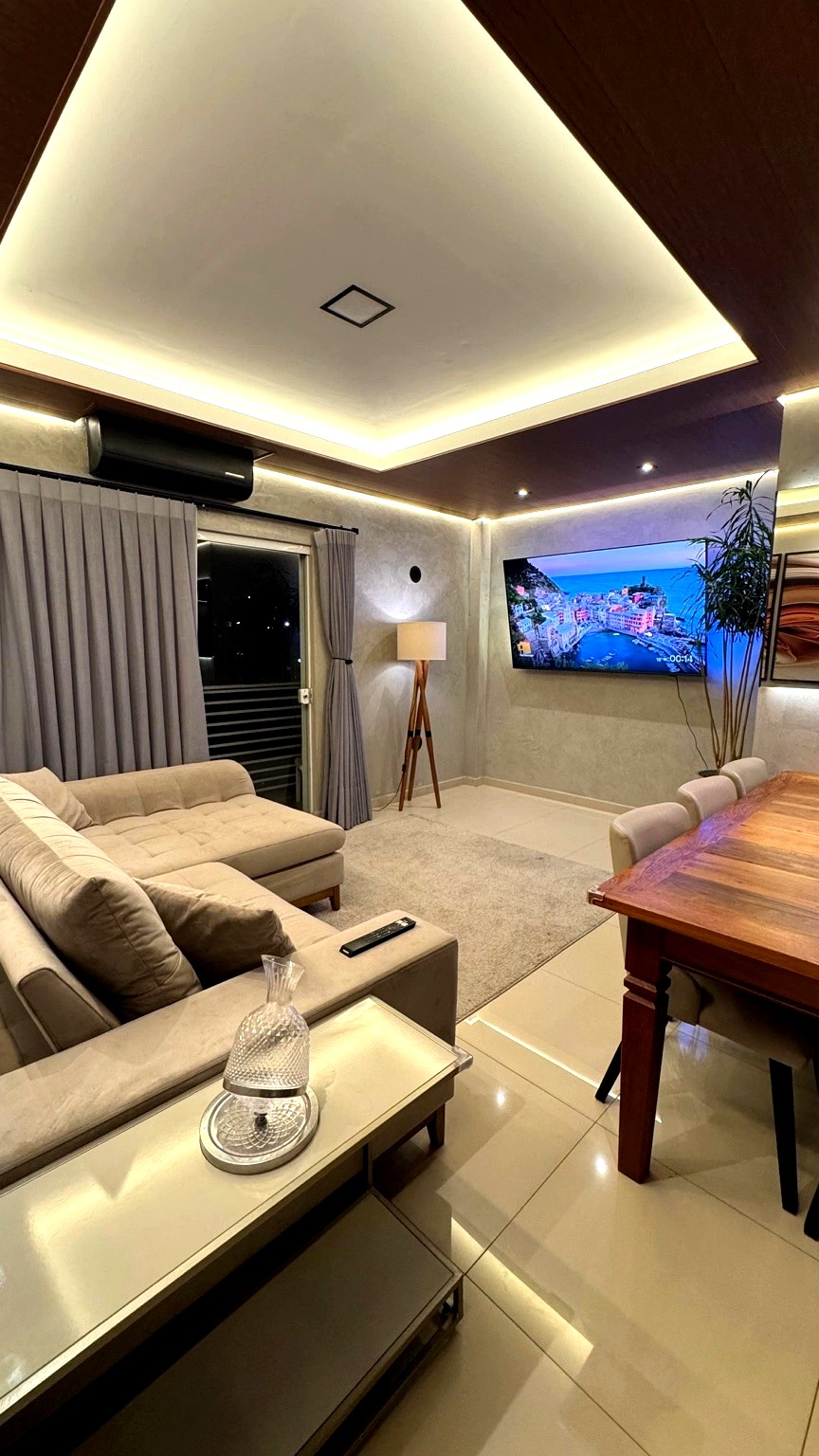 Área interna varanda, sala com smartv 55 ",ar condicionado split quente /frio, wifi fibra alta velocidade,churrasqueira ,cozinha super equipada , lavanderia com máquina lava e seca, quarto 1 cama casal queen com ar condicionado split quente/frio,quarto2 duas camas solteiro com ar condicionado split quente /frio,banheiro comum aos dois quartos Área externa patio entrada com banco ,garagem coberta e privativa ,chuveiro para pós praia,cadeiras praia e quarda sol