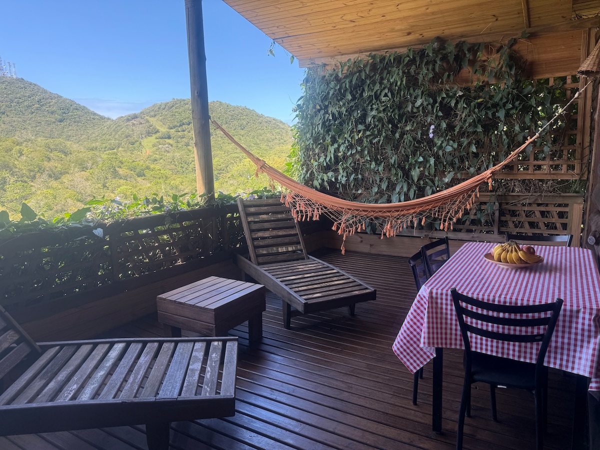 "Venha para o Refúgio do Ermitão, um oásis exclusivo localizado no Morro da Ferrugem, cercado por um bosque tranquilo e com vista deslumbrante para o pôr do sol na Lagoa. Perfeito para quem busca tranquilidade, longe do movimento, mas perto o suficiente da praia e do centrinho(apenas 600 metros). Aproveite o som das árvores balançando e o canto dos pássaros em um ambiente tranquilo".Desfrute de comodidades modernas. - Ar condicionado - TV a cabo - Internet de fibra de 600MB - Ofurô aquecido