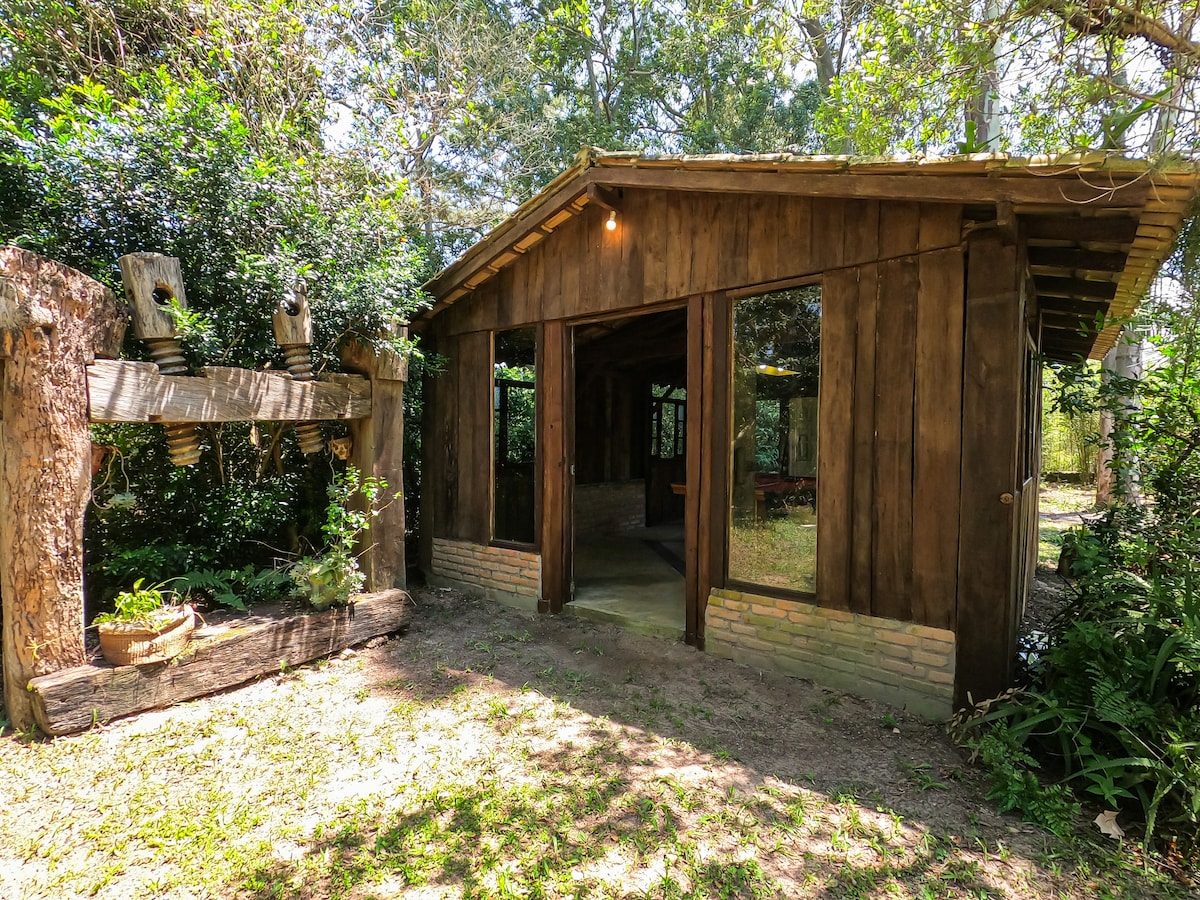 Chalé rústico, charmoso e confortável na área central de Garopaba. O chalé conta com sala, banheiro, cozinha equipada, mezanino e área em deck com churrasqueira. Ar condicionado 12.000btus Internet WIFI fibra ótica 500 Mbps. TV smart 43 polegadas com apps, Youtube e Netflix. Piscina natural linda, com água corrente, limpa e fresca. De uso exclusivo dos hóspedes. Estacionamento no terreno com portão eletrônico. Local familiar, tranquilo e sossegado. Excelente para férias e praias.