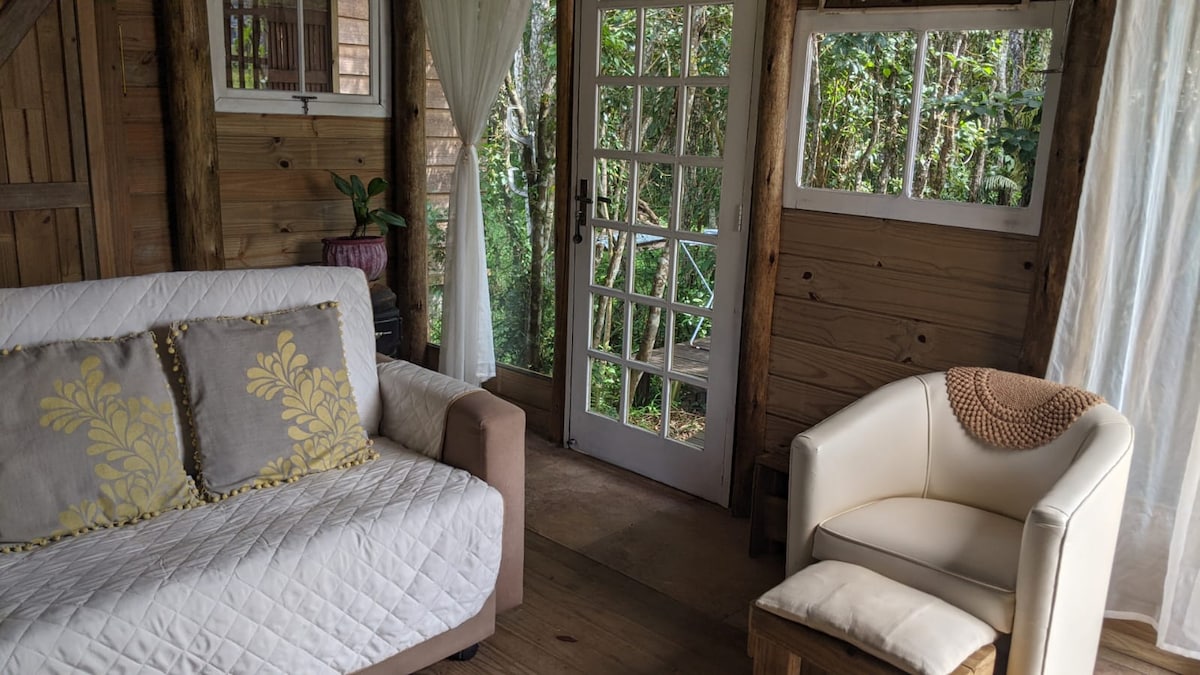 Cercado por montanhas, floresta e com vista para o mar, este refúgio é ideal para quem busca descanso e conexão com a natureza. Desfrute do nascer do sol e da lua, noites estreladas, o som dos pássaros, a brisa fresca e uma horta orgânica. O acesso é seguro, com trilha de concreto que facilita a chegada de qualquer veículo em qualquer clima.