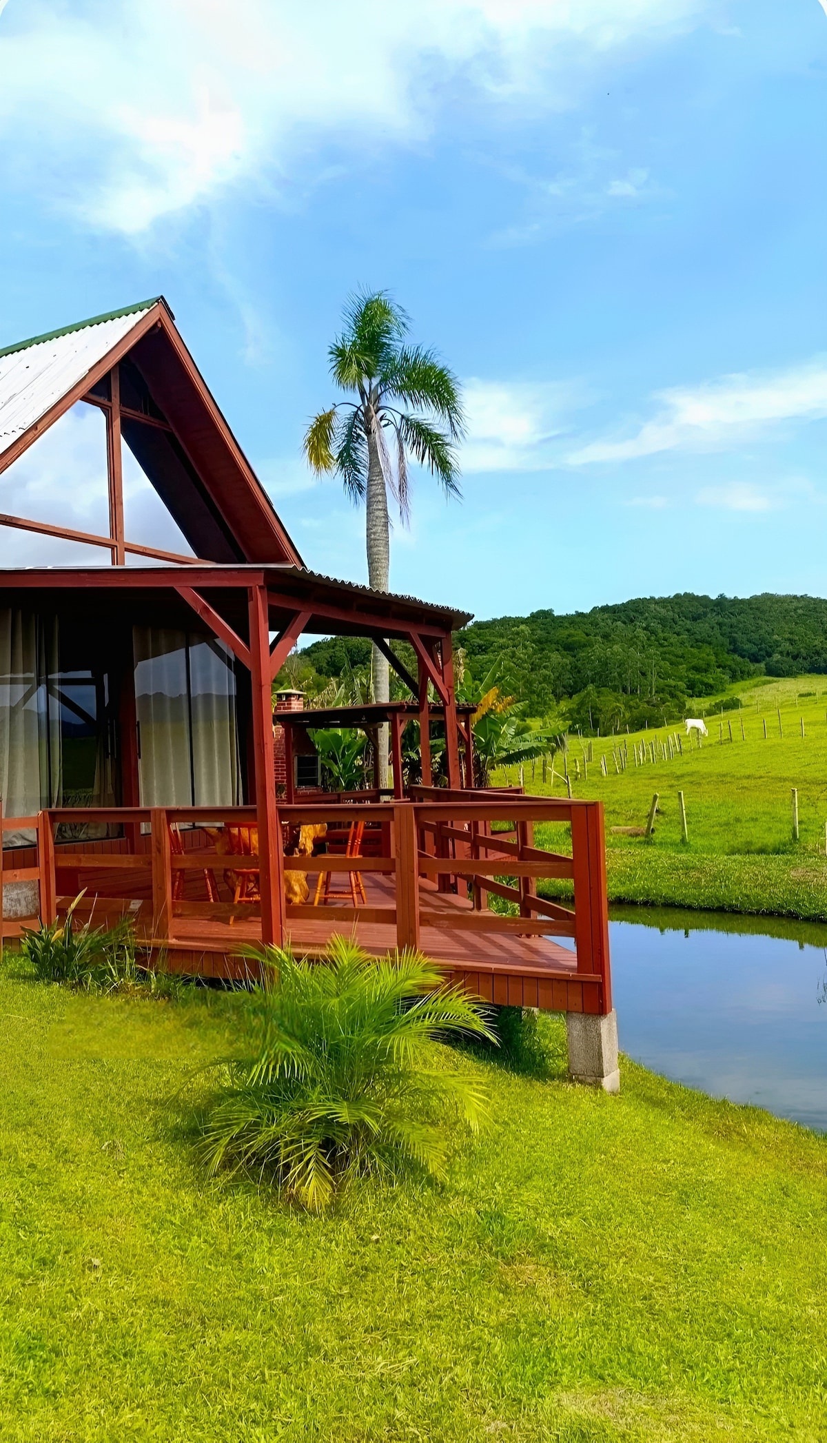Na Cabana Vermelha, você viverá uma experiência de conexão total com a natureza. Imagine acordar ao som dos pássaros e saborear um café na varanda, rodeado por árvores e o frescor da manhã. O espaço está localizado no Condomínio Maranata, com acesso exclusivo à Lagoa de Ibiraquera, oferecendo um pôr do sol deslumbrante. Além disso, está em frente à SURFLAND BRASIL. Estamos a apenas 5 minutos de carro da Praia do Ouvidor e Praia Rosa Norte.