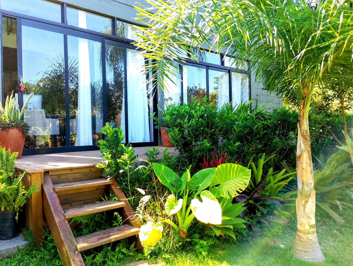 ✨ Vida Simples Loft – Garopaba ✨ Amplo loft de 95m² a 700m do mar, com vista para morros e a 200m das dunas do Siriú. Bairro tranquilo e familiar, a 2 km do centro. O aluguel é somente do loft; estacionamento, jardim e churrasqueira são extras compartilhados. Somos paisagistas e criamos um espaço especial, cheio de boas energias e conexão com a natureza, ideal para quem busca tranquilidade e simplicidade. 🌿