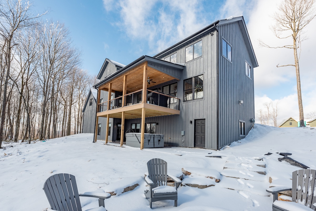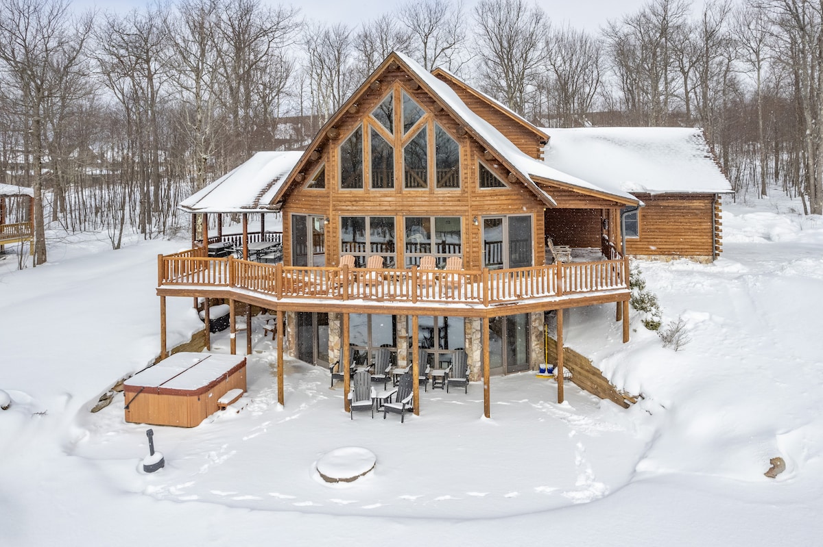 A beautiful chalet with cathedral ceilings located within 2.5 miles of the Wisp and the Lake, sits among seven acres of land that includes a pond, a hot tub and fire pit. This property comfortably sleeps seven. Perfect for a memorable mountain vacation minutes from Deep Creek Lake. Note: The property is shared with Cozy Cottage by the Slopes and may be occupied during your stay. This property has year round community pool access GC CARC – Community Aquatics & Recreation Complex.