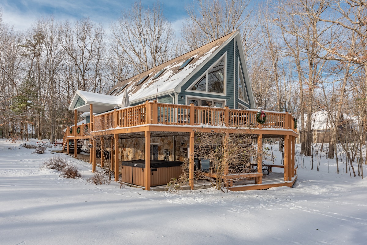 舒适的湖滨度假屋,带码头、热水浴缸和壁炉