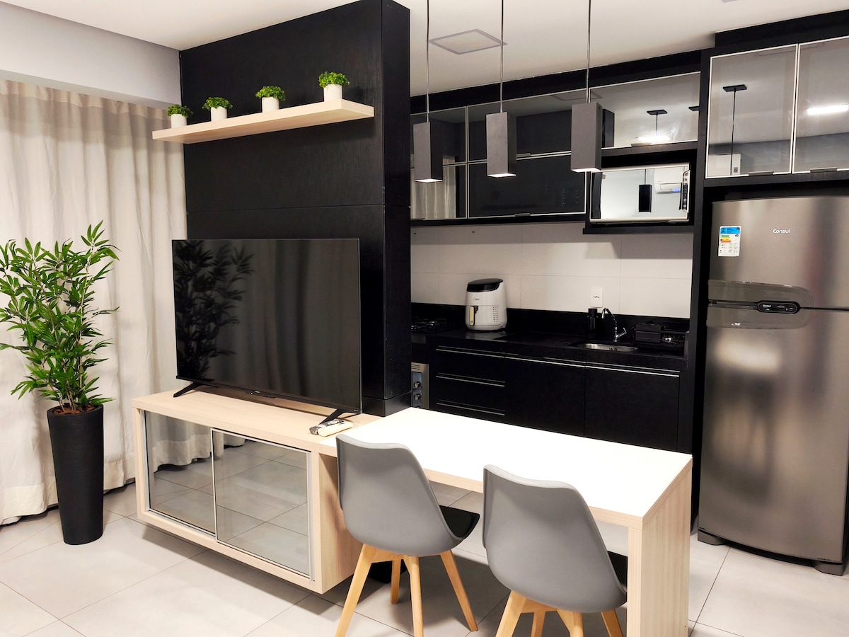 Apartamento Studio privado exclusivo para o hóspede Todo mobiliado e equipado Andar Alto Cama, mesa e banho completo. Sabonete e Shampoo. Cozinha Completa. Smart Tv 42" Canais Locais 02 elevadores Garagem Privativa Self Checkin - Próximo ao Bolshoi (10min. a pé). - Região Segura e Privilegiada -Máquina Lava/Seca (pago no prédio) -Taxa extra p/ troca de enxoval (cama/banho) durante a estadia. - Taxa extra acima de 2 hóspedes O uso ilícito do espaço pode ocasionar penalidades
