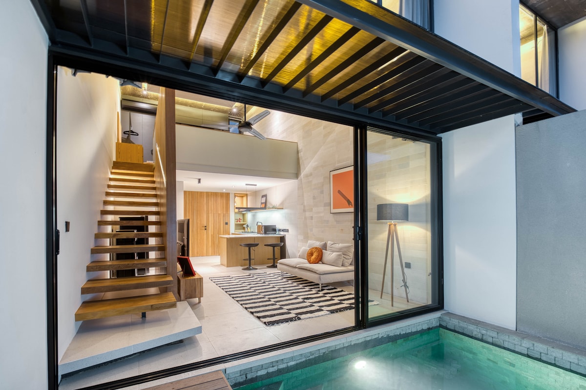 *Adults Only* Not suitable for children Set over two luxurious levels of modern contemporary design the uniqueness of the Loft is unrivalled. With elements incorporating concrete and luscious honey-toned timber features, there’s an absolute sense of warmth and opulence within. The lower level allows you to open the expansive floor to ceiling sliding doors creating the seamless flow from the main living area inviting the secluded tropical courtyard and pool to become one.
