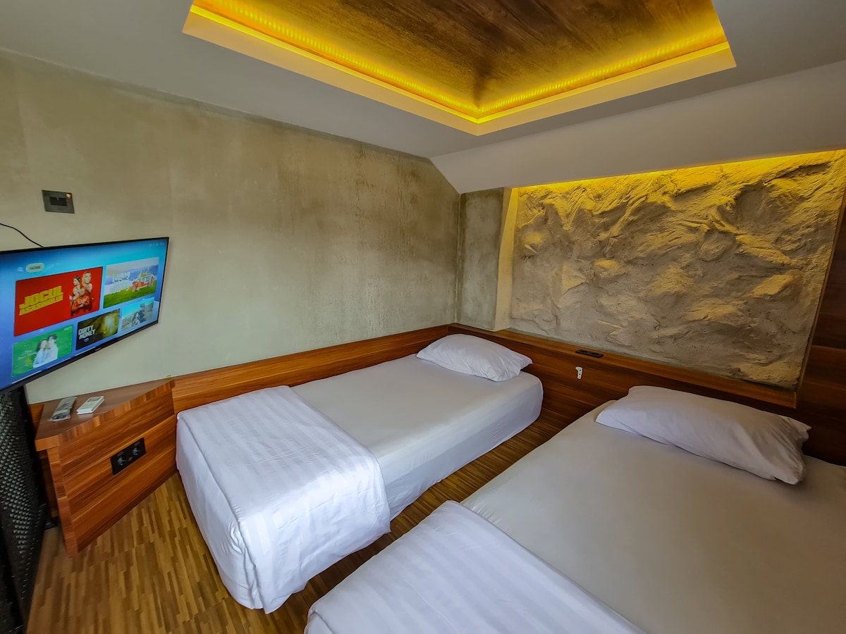 2x XL TWIN BED (200x100) Non Smoking View Mt Papandayan only Fast WIFI - 40 - 60 mbps Sertifikat Vaksin = Wajib di tunjukan pada saat Check IN, Pembatalan sepihak berlaku apabila Tamu tidak bisa memberi bukti vaksin No TV Max 2 adults per room Size 3 x 4 m with Mezzanine (2 floors) Large Bathroom Working Table Access to Roof Top Young Adults only (15 - 60 years old) - During Covid 19