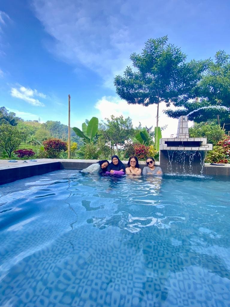 Villa Tagar Hidayah, Villa yang berlokasi tepatnya di Lebakmuncang Ciwidey yang cocok sekali buat staycation bareng keluarga dengan harga yang relatif murah dan suasana pedesaan yang masih kental. Berada di tengah pedesaan dengan pemandangan gunung-gunung dan pesawahan, ditambah udara yang masih sejuk membuat liburan bersama teman atau keluarga lebih nyaman. Selain itu juga bisa menikmati kolam berendam dengan air hangat