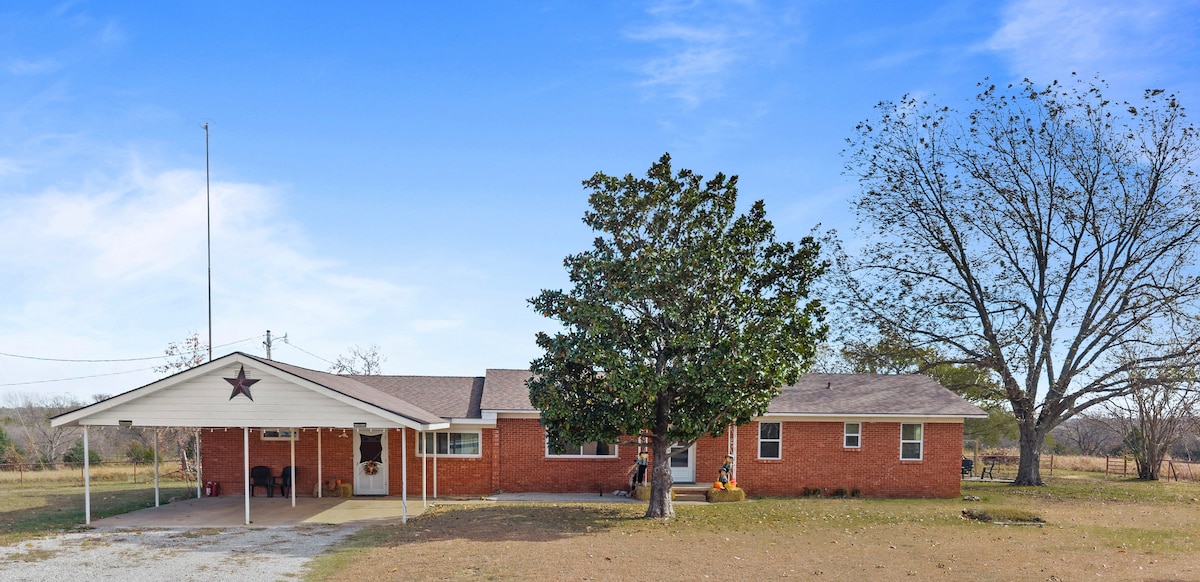 Beneath big Oklahoma skies, our peaceful ranch is waiting. This 3-bedroom escape features two Queen rooms (one ensuite) and a snug twin room on 20 tranquil acres near Pauls Valley, hosted by cowgirls who know how to make you feel at home. Spark a fire, pour a little something special, and watch sunset paint the tree-lined pastures. Laughter flows from the game room, stars dance overhead, and evenings drift by calm and sweet. Enjoy a true Western welcome. Come rest, breathe deep, and stay awhile.