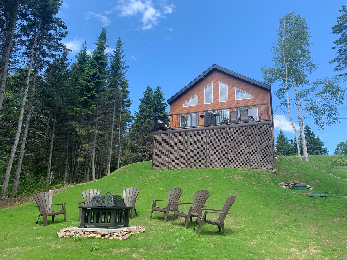Superbe chalet contemporain, chaleureux et luxueux pouvant accueillir 7 invités, construction neuve, situé à l’embouchure de la baie de Gaspé directement au bord de l’eau avec une vue sur le Golfe du Saint-Laurent. Endroit paisible avec vue à couper le souffle! Le chalet est situé à mi-chemin entre Percé et Gaspé et à distance de marche d’un petit havre de pêche.