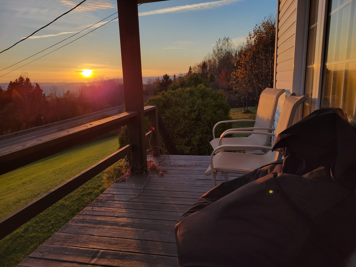🌟Welcome to our waterfront 3-bedroom upper duplex, featuring a hot tub overlooking panoramic views of the Restigouche River and the Appalachian Mountains. Situated near snowmobiling and four-wheeling trails, this retreat is ideal for outdoor enthusiasts, offering access to skiing 🎿, fishing🎣, hiking 🥾, biking🚴‍♂️, golfing⛳, and more. Whether you're soaking in the hot tub or exploring the great outdoors, Chalet Levesque provides an ideal blend of relaxation and adventure for up to 10 guests.