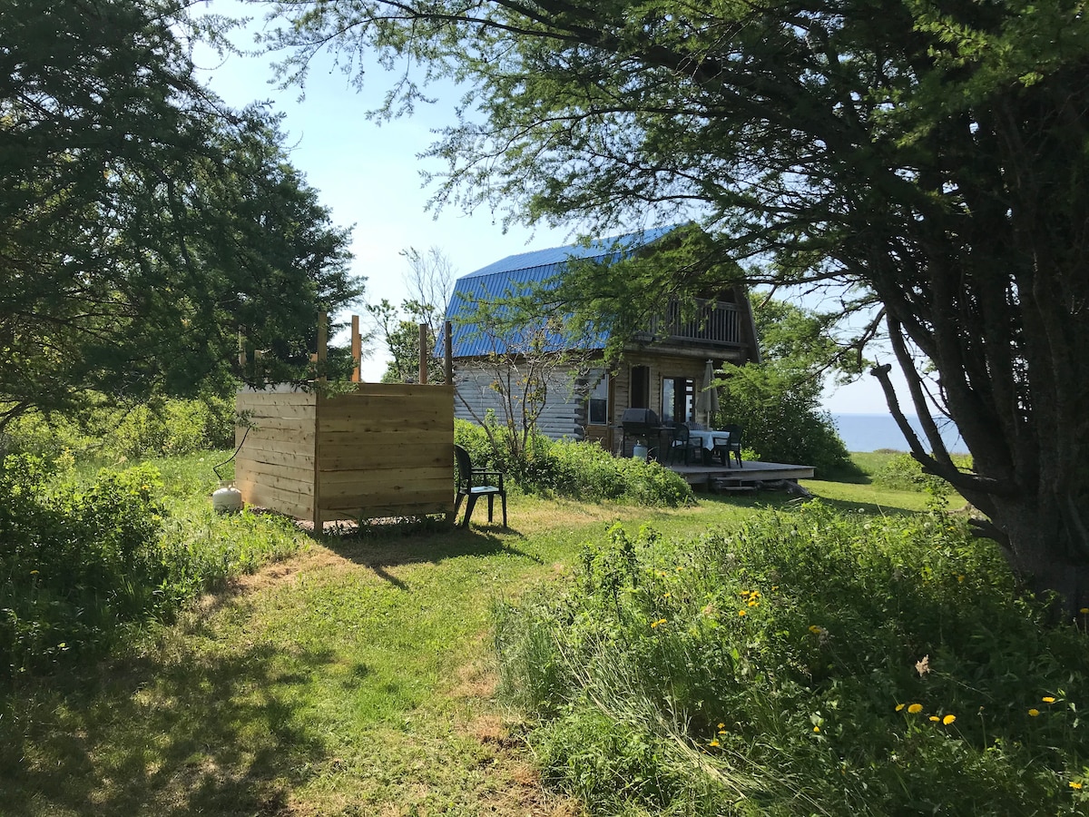 Chalet avec rallonge, chaleureux à petit budget, situé près de la mer et rivière, idéal pour couple ou seul. Endroit rêve pour des amateurs de plein aire. Initiation a la pêche a la truite,bar Rayé. Faire de kayak libre, location de kayak et équipements de pêche, bois, épicerie et restaurant sur le site. Près de tout, nous sommes situe à milieu entré Roche Percé et gaspé, face Parc Forillon 45 min , rivière émeraude 20 min et Plage de haldimand 26 min.
