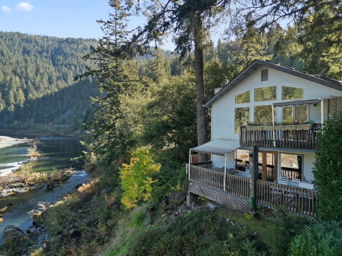 Beautiful cedar wood cabin in the Redwoods with a hot tub overlooking the Smith River. Newly built with rustic charm and attention to detail. One bedroom, plus a loft with full staircase, furnished with new queen beds. Wonderful grassy area behind the cabin for picnics, relaxing and badminton. Perfect location for peaceful getaway, within 15 minutes of Redwood parks, beaches and restaurants. Come relax in a little peace of heaven nestled in the forests and rivers of the Northern California Coast