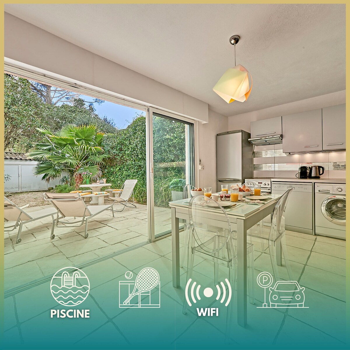 客人喜欢加桑度假屋的厨房、无线网络和游泳池