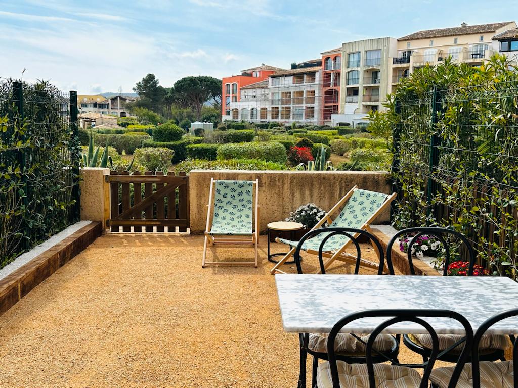 Situé à 200m à pied de la plage et proche de St-Tropez, idéal pour un week-end ou des vacances au soleil. Appartement T2 dans une résidence familiale, en rez-de-jardin, avec accès à la piscine lagon et tennis de la résidence (en saison estivale) A proximité: - plage (200m) - centre commercial (2min) - restaurants - marina - parc d'attraction, mini golf Piste cyclable Navette Bateaux Verts pour aller à Ste Maxime ou St-Tropez Saint-Tropez à 6km Port Grimaud à 2.5km Plage de Pampelonne à 10km