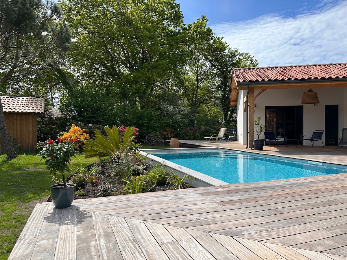 Ce logement paisible offre un séjour détente pour toute la famille. Composé de trois chambres, deux salles de bain, piscine au sel chauffée (de fin Avril à Octobre) espace extérieur pour se détendre et manger en famille ou entre amis. Cette belle maison se situe à seulement 2 minutes à pied du lac et des épiceries. Un petit coin de paradis dans les Landes situé entre Mimizan plage (20min) et Biscarrosse plage (30min). La maison est très bien équipée pour les petits, comme pour les grands .