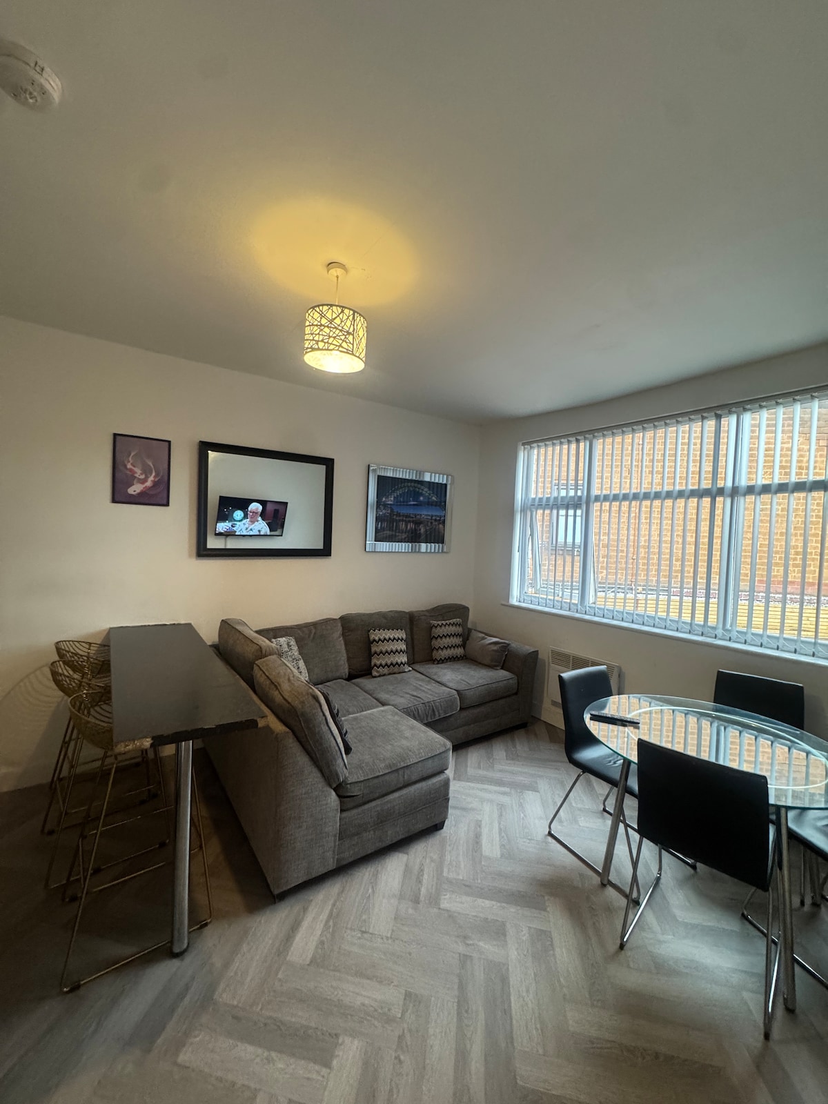 2bed 1st floor apartment, can sleep upto 5 guests If this apartment is not available, click on our profile to see other apartments in the same block. Fully equipped kitchen and brand new furnishings throughout. Located within 10 minutes walk to city centre/quayside where there is an abundance of nightlife, dining, art and culture, or trendy Jesmond with its wine bars & cafes . Excellent transport links to the coast. Our accommodations are ideal for families, tourists and contractors.