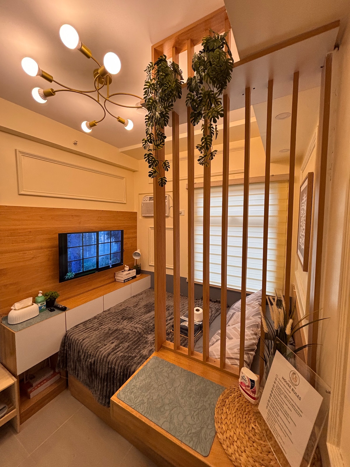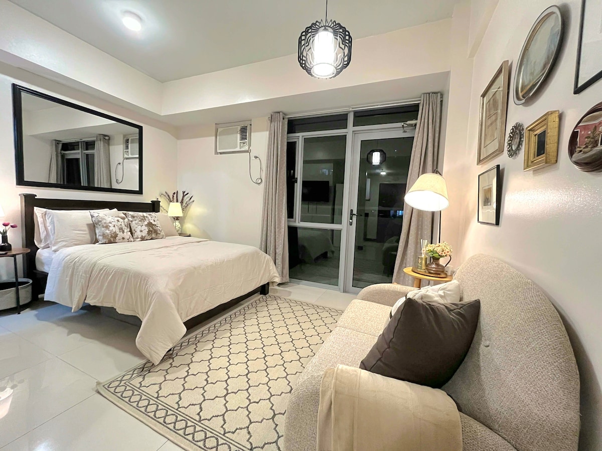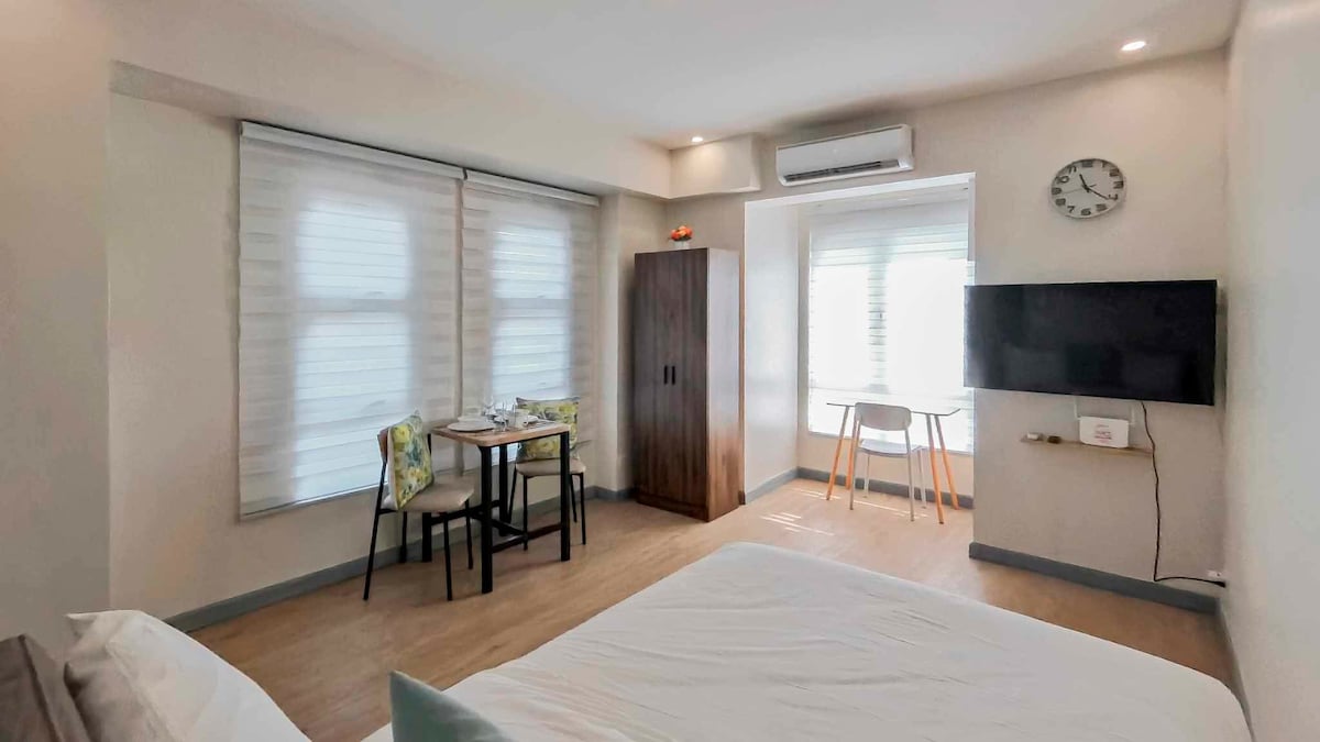 Welcome to Your Suite Escape—nestled right in the vibrant entertainment hub of Tomas Morato, Quezon City! Explore trendy cafés, indulge in local dining, or simply unwind after a long day with cozy movie nights on Disney+ and Netflix right in the comfort of your suite. Enjoy a thoughtfully designed studio with warm interiors, natural light, and hotel-style comforts. If this place is booked on your date, check out our other themed spot at airbnb.com/h/your-suite-escape-the-26th-at-tomas-morato
