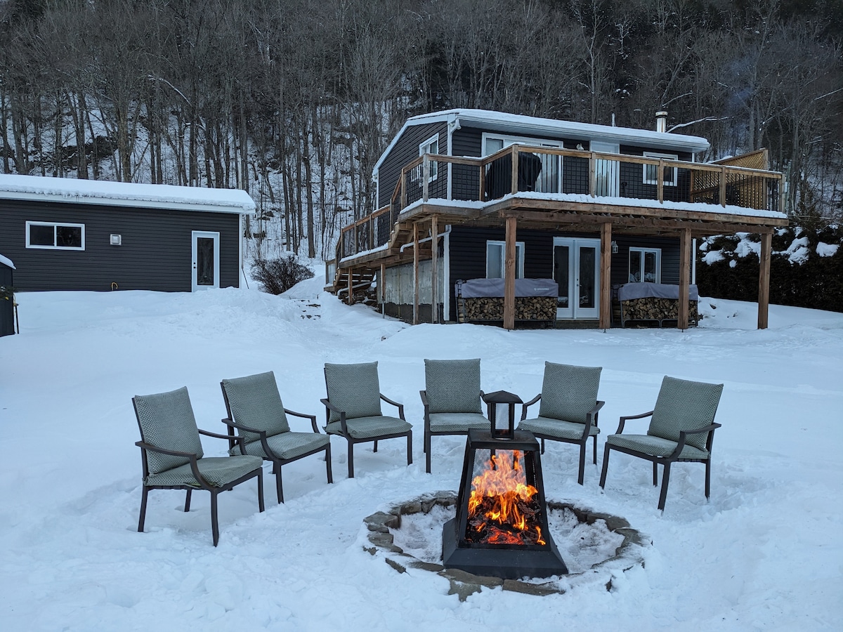 Welcome to the magnificent 2BR 1bath cottage nestled on the tranquil lot in Val-des-Monts, Quebec, offering a perfect escape from the everyday hustle and bustle. It promises a secluded retreat immersed in the dreamy natural ambiance with private river access. ✔ 2 Comfortable Bedrooms ✔ Open Design Living ✔ Fully Equipped Kitchen ✔ Outdoors (Patio Seating, Hot Tub, Fire Pit, BBQ Grill) ✔ River Access (Kayaks, Bedrock) ✔ Smart TV ✔ High-Speed Wi-Fi ✔ Free Parking Learn more below!
