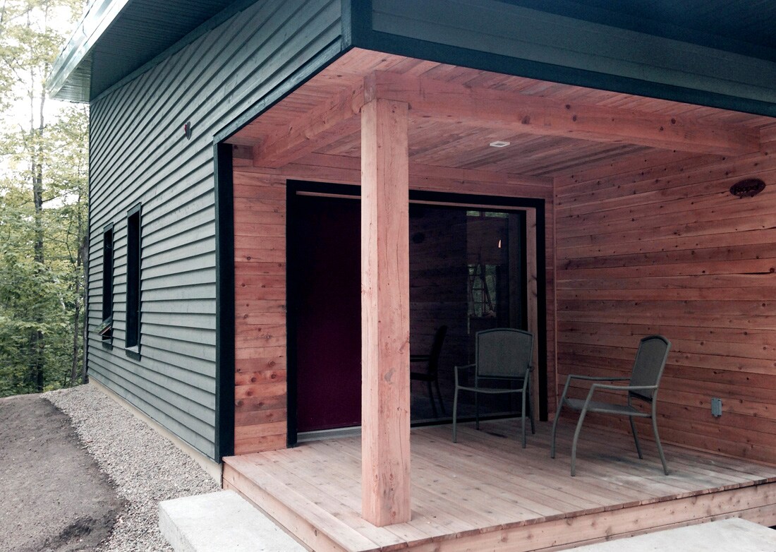 Welcome to our modern countryside cabin located on a 2 acre lot in Wakefield, Quebec. Come relax and recharge for a few days while taking advantage of nature and the cozy interior with fireplace. There is plenty to do nearby: discover the Wakefield village, its restaurants, boutiques, farms, the Gatineau Park, the Nordik Spa, Eco-Odyssee, the nearby golf courses and ski hills, etc. (CITQ Permit #298430. We pay all Sales and Income taxes to the prov/fed governments).