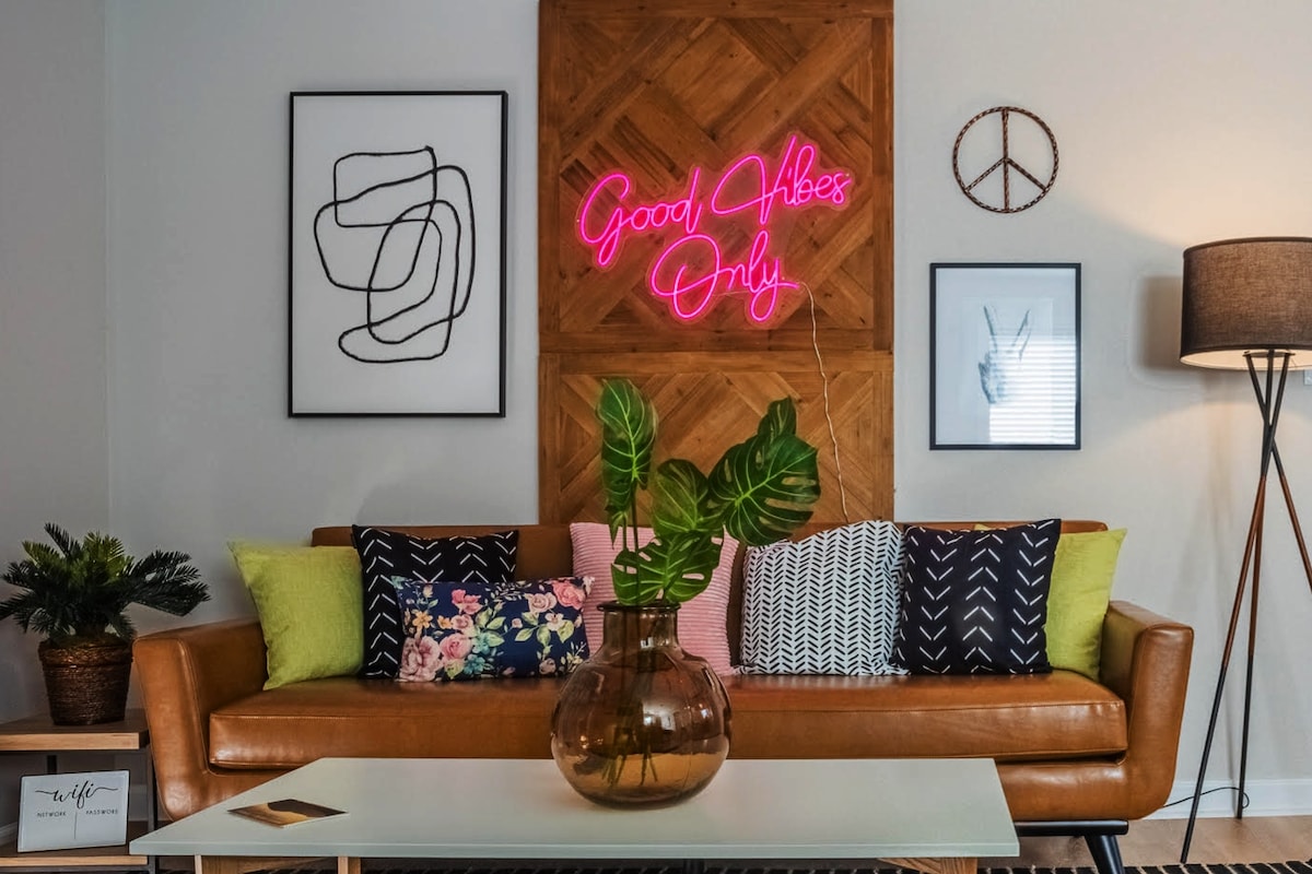 Neon vibes to base your mountain trip from! Should you forget to chill out, the lights will be there. This freshly renovated, comfy studio is perfect for 2 people to kick their feet up to take in the mountaintop beauty. Located only 3.5 miles from downtown Gatlinburg where shopping, siteseeing, and hiking are also waiting for you. Fully furnished for your comfort and a ready to use kitchen for making a home cooked meal. You'll be close to the park entrance with dedicated wifi and space to WFH.