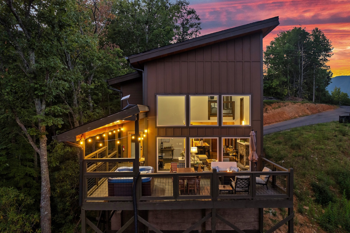 *Community pickle ball courts! Completion date: 5/1/24 *3 resort pools (seasonal, walkable, one heated) *Beds: 1 King, 1 Queen, 1 Bunk Bed, 1 Full sleeper sofa *Propane Fire Table *Covered Hot Tub *Arcade Game * Incredible Views *Paved Parking *Fast WIFI *Spacious Deck * Sleeps 8