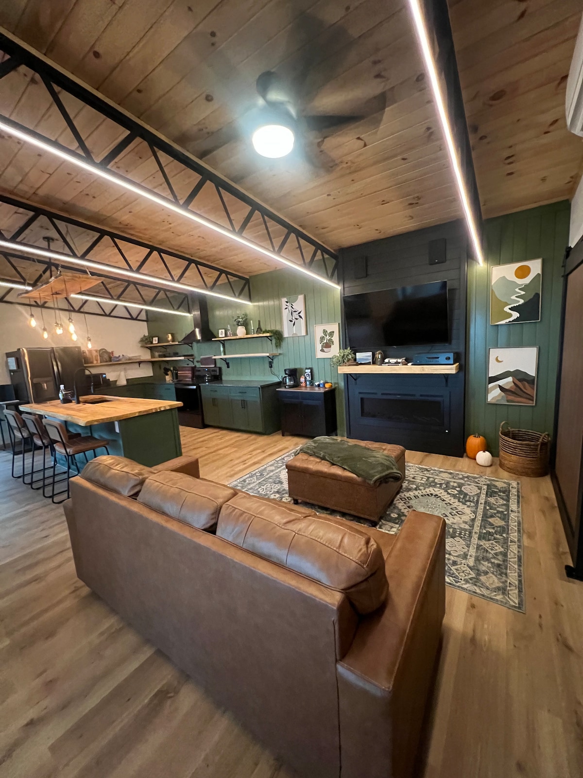 ✅ Centrally Located (8 miles to Dollywood or 8 miles to Gatlinburg) ✅ Hot Tub ✅Mountain views ✅Firepit ✅Electric Fireplace Inside ✅Smart TV ✅Wet room (soaker tub and shower) ✅Charcoal Grill ✅Frisbee Golf ✅Covered porch with rocking chairs ✅Brand New Modern-Compact Studio Cabin (550 sq ft) ✅King Bed w/luxury bedding ✅Washer/Dryer, Dishwasher, Oven, and Fridge! ✅Vintage board games ✅Record Player