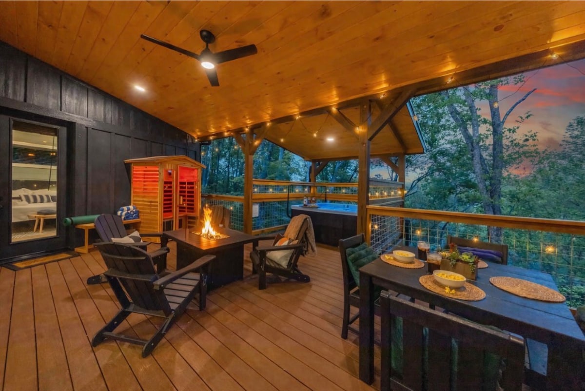 ❗️CALLING ALL COUPLES❗️ Looking for adventure or tranquility? Look no further! The Forbidden Honey Cabin makes the perfect honeymoon, anniversary retreat or special get-away. Enjoy the peace and serenity of nature all while being in your own ✨aesthetic✨ little oasis. Enjoy a unique, studio cabin with a personal theater room, private hot tub pergola, and exclusive outdoor fire pit. It’s conveniently near the GSM + all the attractions. 📍25 min Dolly Wood 📍30 min Pigeon Forge 📍40 min Gat