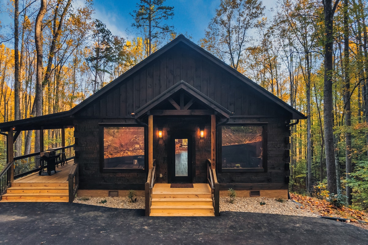 The Aspen Nines, a modern, instagrammable new construction cabin in the ♥️ of Gatlinburg. ♥ Please save the cabin. Click the heart in the upper right hand corner to help you find The Aspen Nines again and share it with other people! 💦 Hot Tub (with a view!) 🔥 Propane Fire Pit 🔥 Propane Patio Heater 📺 75" Roku TV - Netflix, Hulu, Disney+, ESPN+ all provided 🕹️ Foosball, Air Hockey, Board Games 📶 400+ Mbps WiFi 🛏️ Two Kings (w/ Ensuites) 🛏️ Four Queens 3️⃣ Levels 📏 2100 sqft