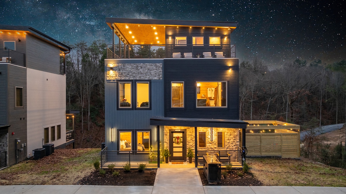 屋顶小屋,8分钟到多利伍德,高尔夫模拟器,热水浴缸