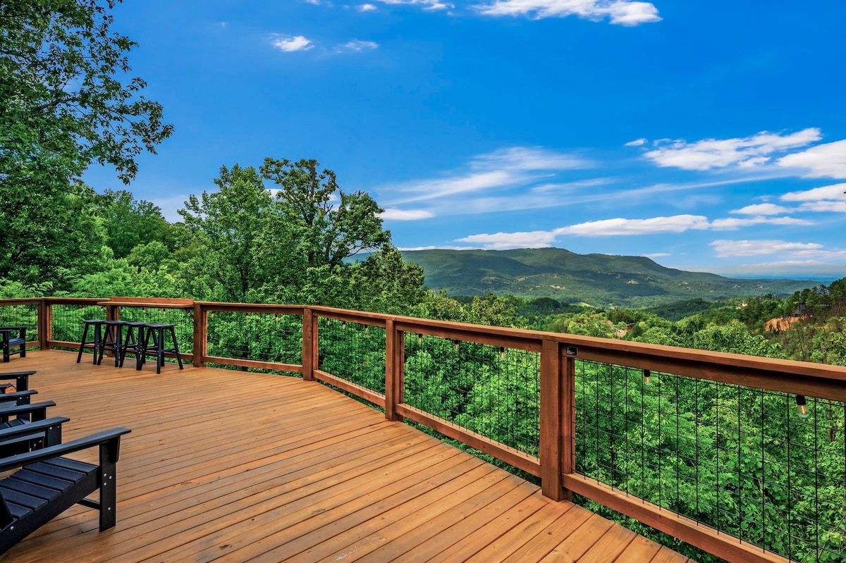 Experience unparalleled luxury at Windows to the Mountains, a modern marvel nestled in Gatlinburg with stunning views of Mt. Leconte. Chalet features a rooftop deck with a modpool, movie theater, and exquisite outdoor amenities. Enjoy a fully-equipped kitchen, cozy living room with a vapor fireplace, and a master suite with a spa-like bathroom. Complete with a coffee bar, game tables, and a sauna, Windows to the Mountains offers an exclusive retreat for discerning guests seeking a lavish escape.