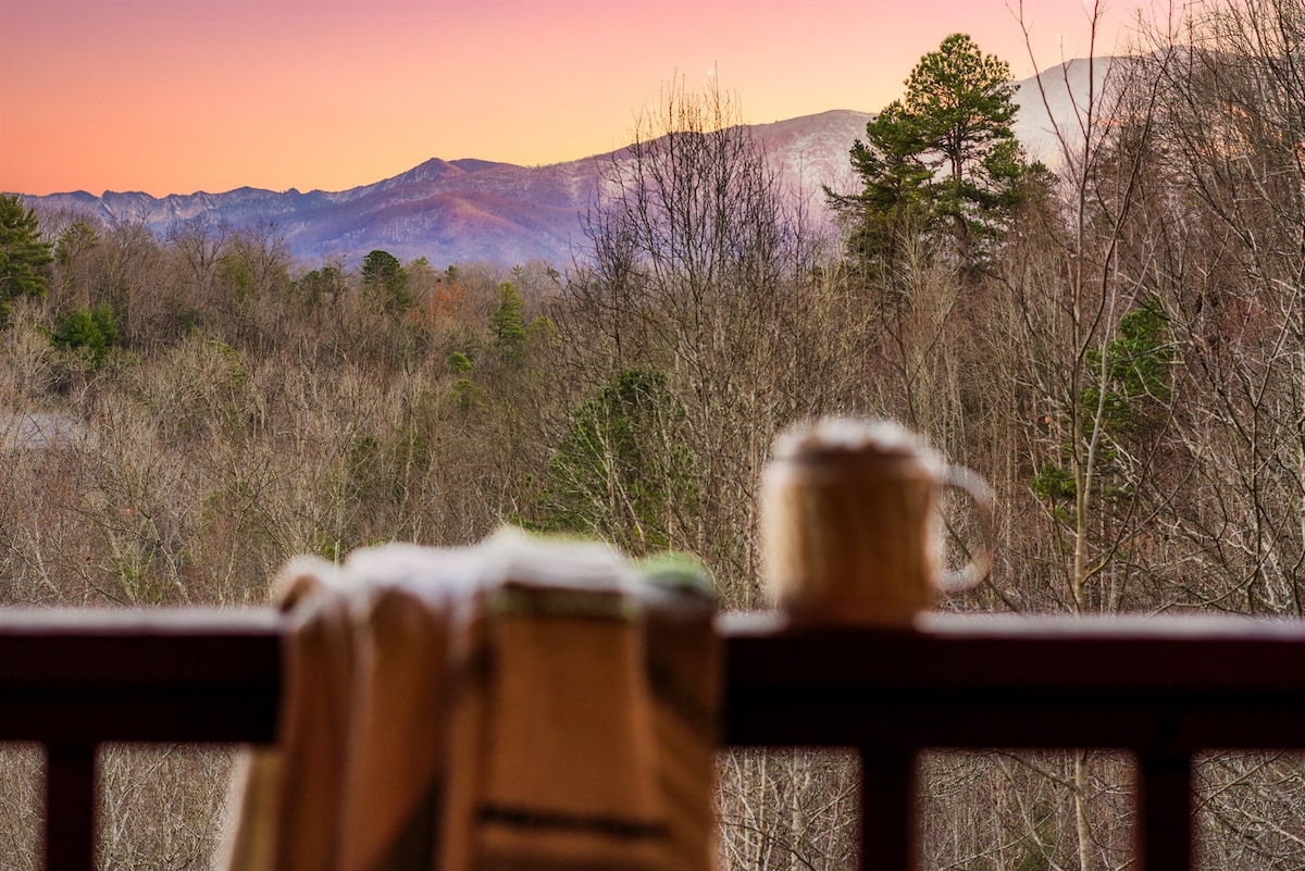 热水浴缸+日落景观–宁静山间度假胜地