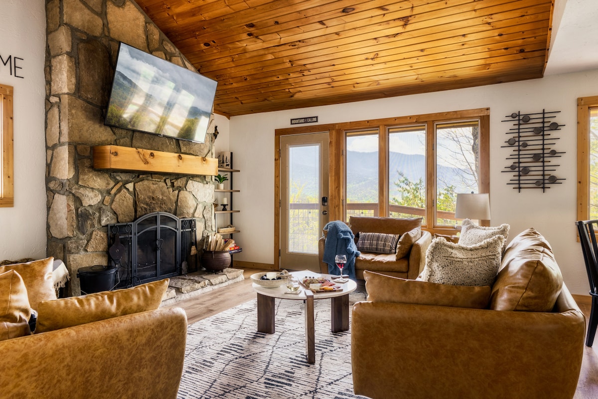 A beautiful, peaceful getaway - Snuggle up with mountain views, a fire table, and a luxury massage chair while the world slows down. Perfect for couples who want a peaceful, romantic holiday retreat. 💘 Romantic cabin for couples 🌅 Year-round mountain sunset views 💦 Hot tub ⚡️ EV charger 😃 Massage chair ✨ Ideal for honeymoons, anniversaries, or “just because” ❤️ This cabin is the inner peace your soul craves. Book now—Kindred Spirits won’t disappoint