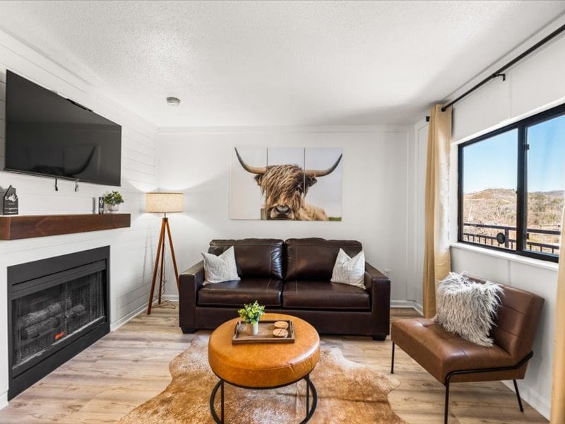 Enjoy Breathtaking Views at Don’s High Chalet! We invite you to Relax in our magnificent one bedroom condo boasting a plush queen sized log bed in the bedroom and queen sleeper sofa with a memory foam mattress in living room. Stream your favorite shows or movies on our ROKU TV in the living room or ROKU TV in the bedroom with FAST WIFI! Cook your favorite meal in our well equipped and spacious kitchen while enjoying the incredible views. Unwind in our 365/24/7 hot tubs or seasonal pool!