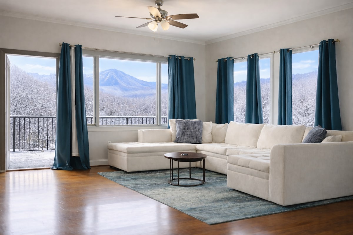Wake up to breathtaking Smoky Mountain views at Honeycomb Hideout, just 15 minutes from the peaceful Greenbriar entrance of the National Park. This cozy Gatlinburg retreat features a fireplace, private balcony, and access to 3 seasonal pools, golf, and pickleball. Perfect for couples or families, it’s a quiet escape close to trails, waterfalls, and all the fun of downtown Gatlinburg. Please Note: The food and wine shown in the photos are for staging and presentation purposes only.
