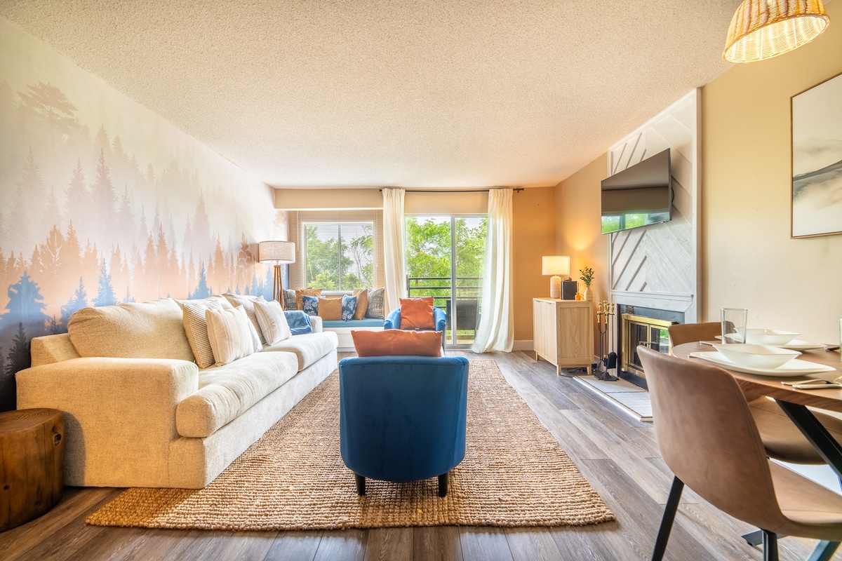 🏡 1 bedroom 1 bath condo at Windy Oaks Apartments (sleeps 4) 🔥FIREPLACE (electric,no heat) 🚙FREE PARKING on premises (1 LOT) 🏊♂️POOL open until Labor Day 📍 Just minutes away from downtown Gatlinburg Kids friendly peaceful and quiet neighborhood. 🌆 Balcony with the most Instaworthy views over SkyLift Bridge and Space Needle (you can watch the New Year’s fireworks straight from your balcony)