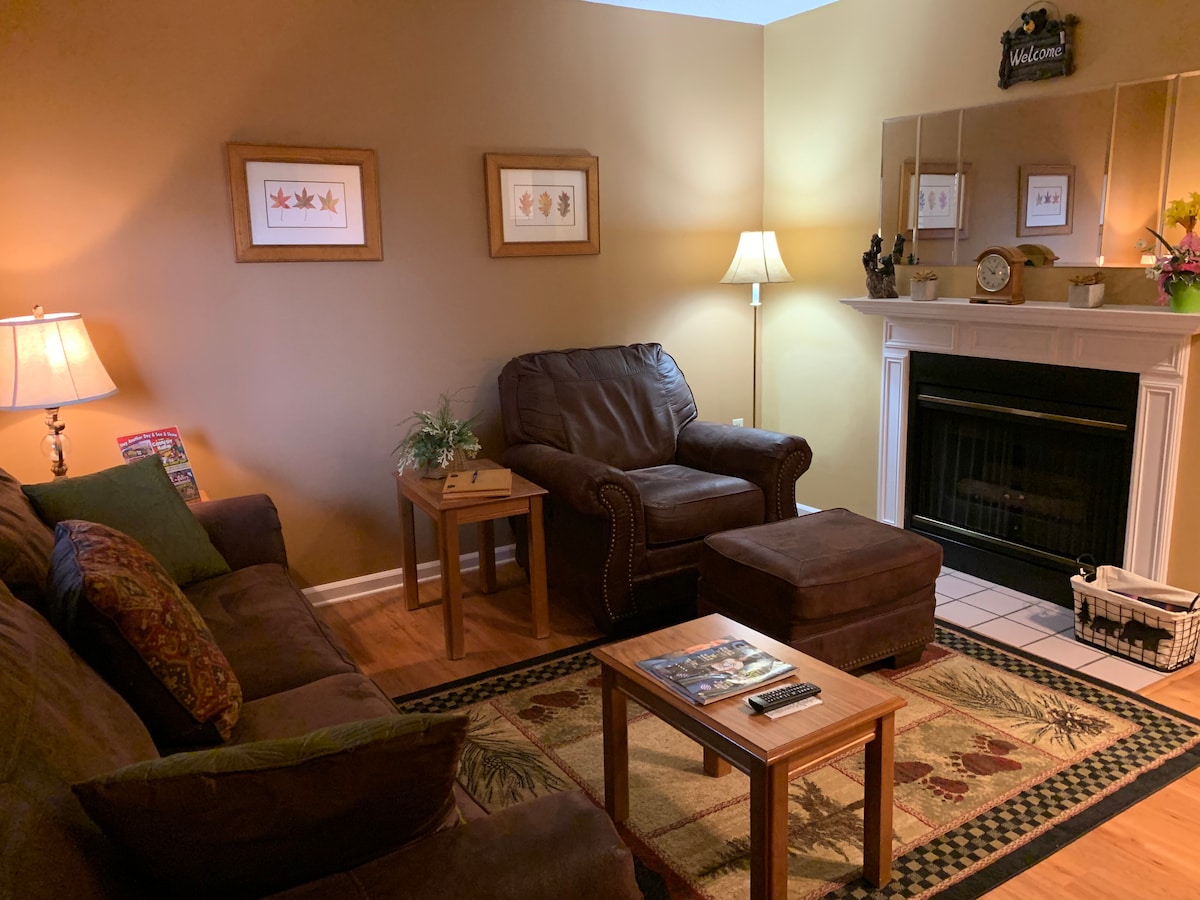 King bed! In room Hot Tub for 2! Couples LOVE our romantic space. Walk everywhere! Beautiful “Gatlinburg Downtown Delight” designer condo in the best location! Walk to shops, pancakes, aquarium, attractions, bars & restaurants. Just 2 blocks to Anakeesta, Donut friar, Village shops. So fun & so easy: no parking/traffic worries- free parking. 1 bedroom: New King bed. Leather sofa sleeper makes out into a queen bed- memory foam comfy mattress! Big In room hot tub/whirlpool spa for 2 is a treat! Ga
