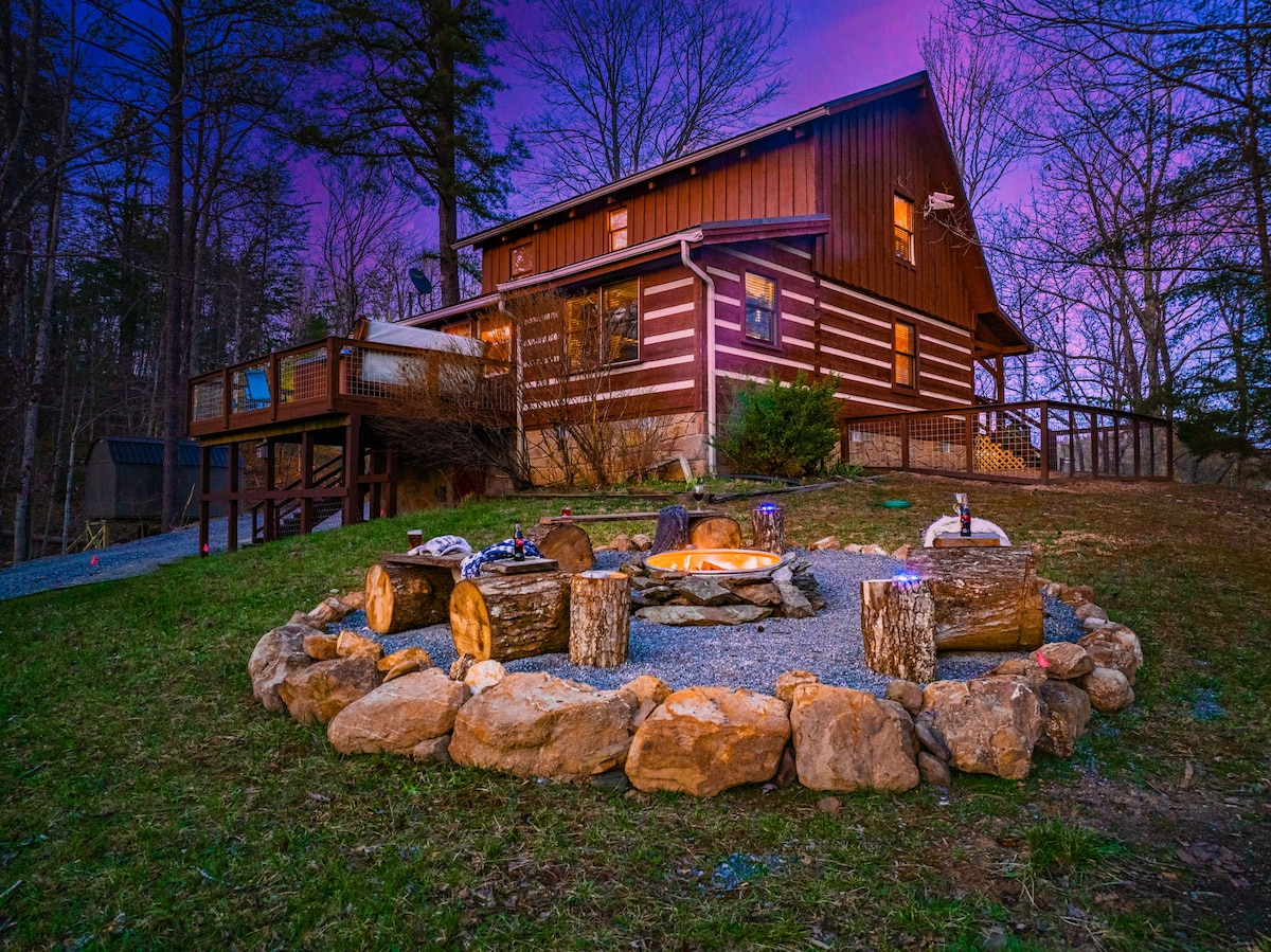 热水浴缸/游戏室/火坑/景观/豪华小木屋!