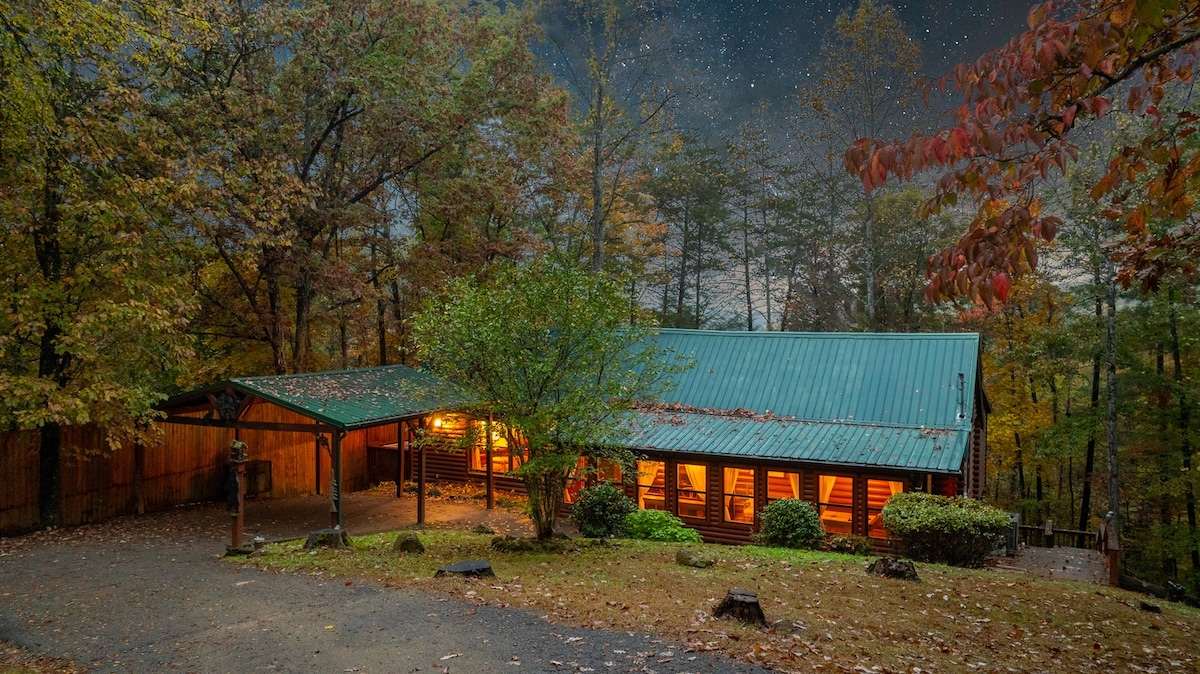 Escape to The Nocturnal Nest, a hidden gem 💎 tucked away amidst the beauty of nature🍃. This cozy cabin offers an idyllic escape for lovebirds celebrating milestones or simply for the fun of it🥰! Create your own luxurious paradise🍹🏝️at home with a personal theater, spacious outdoor patio with a fire pit, hot tub, and BBQ grill. 📍17 min to Pigeon Forge 📍25 min to Gatlinburg 📍57 min to Knoxville ✈️ 📍18 min to Dollywood 🎢 📍24 min to National Park 🌲 📍30 min to Ober Ski Mountain 🏂⛷️