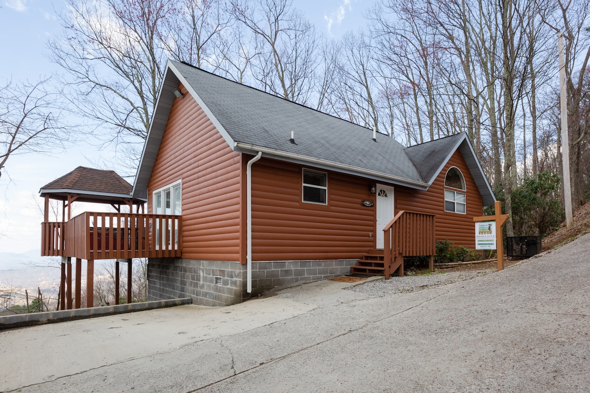 Welcome to Heaven’s Gate 1 — a pet-friendly cabin perched at the top of Ski Mountain in Chalet Village! Perfect for couples or small families, this cozy retreat offers incredible Smoky Mountain views, a private hot tub, and the chance to spot bears and other wildlife. Relax on the back deck overlooking Gatlinburg, or explore nearby attractions — close to downtown and convenient to Pigeon Forge. Guests have access to clubhouse amenities including pool. Must be 21+ to book. Pets allowed with fee.