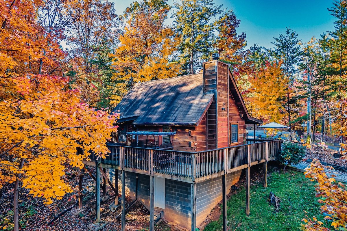 Bluff Mountain Bliss -Romantic log cabin with stunning views! Fall is the most magical time to experience the Smoky Mountains, and Bluff Mountain Bliss is the perfect cabin for your getaway! Located on Bluff Mountain, this romantic cabin offers breathtaking views, crisp mountain air, and cozy evenings by the fire. Whether you’re sipping wine in the hot tub, watching the sunset from the porch swing, or roasting marshmallows at the fire pit, this cabin is designed to make your stay unforgettable.