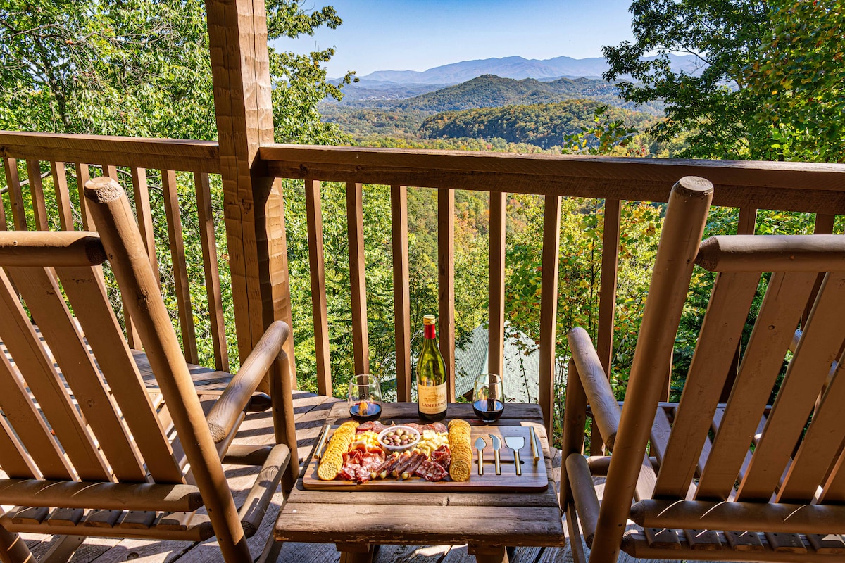 烟雾山景,靠近加特林堡,热水浴缸,游戏室