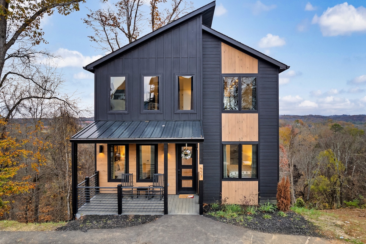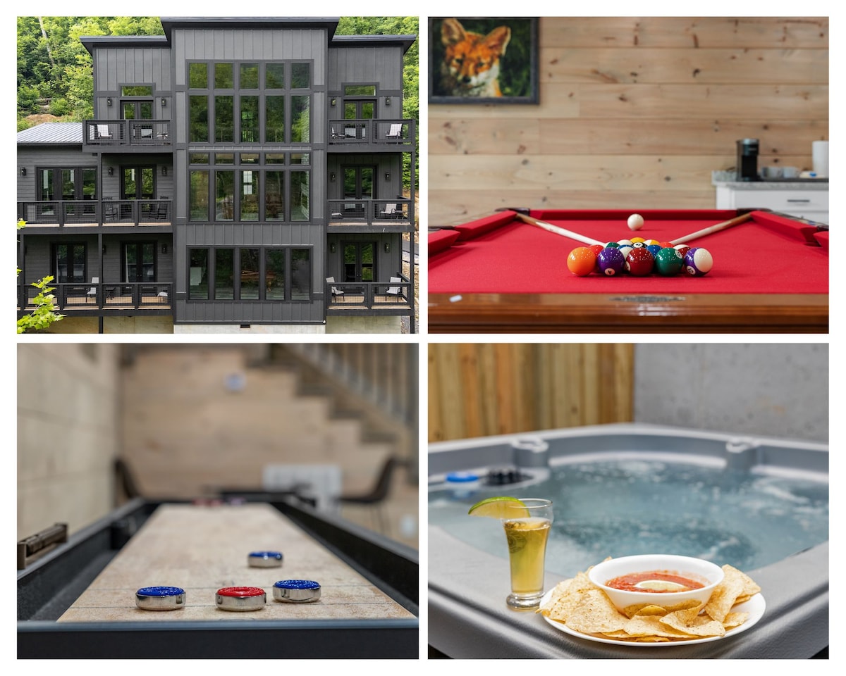 豪华小屋、景观、游戏室、热水浴缸、剧院!