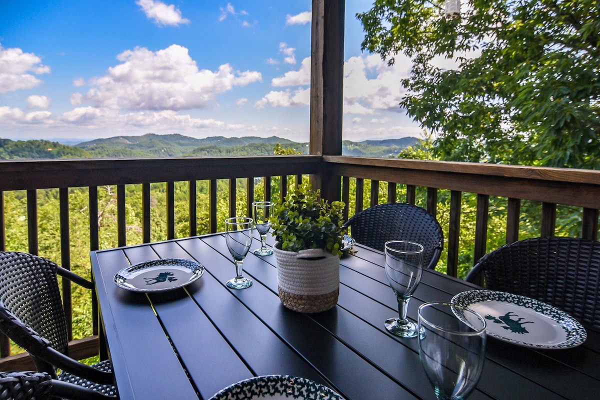 Beautiful, modern log cabin, with amazing mountain views and gorgeous sunsets from the expansive 360° decks. Free access to community pool and 2 catch & release ponds. Every detail of this charming retreat has been designed to give you pure relaxation and enjoyment. Just a 10 minute drive to the entrance of GSM National Park in Wears Valley, it’s the ideal getaway for couples or a small family. Peaceful location, yet conveniently located near Pigeon Forge (13 mi) and Gatlinburg (17 mi).